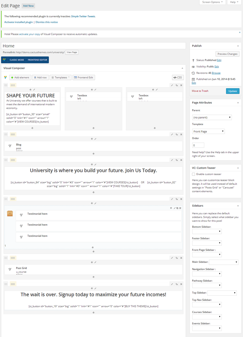 - By default, the Professor Page URL is http://yourdomain.com/course/. For example: http://demo.cactusthemes.com/university/course/