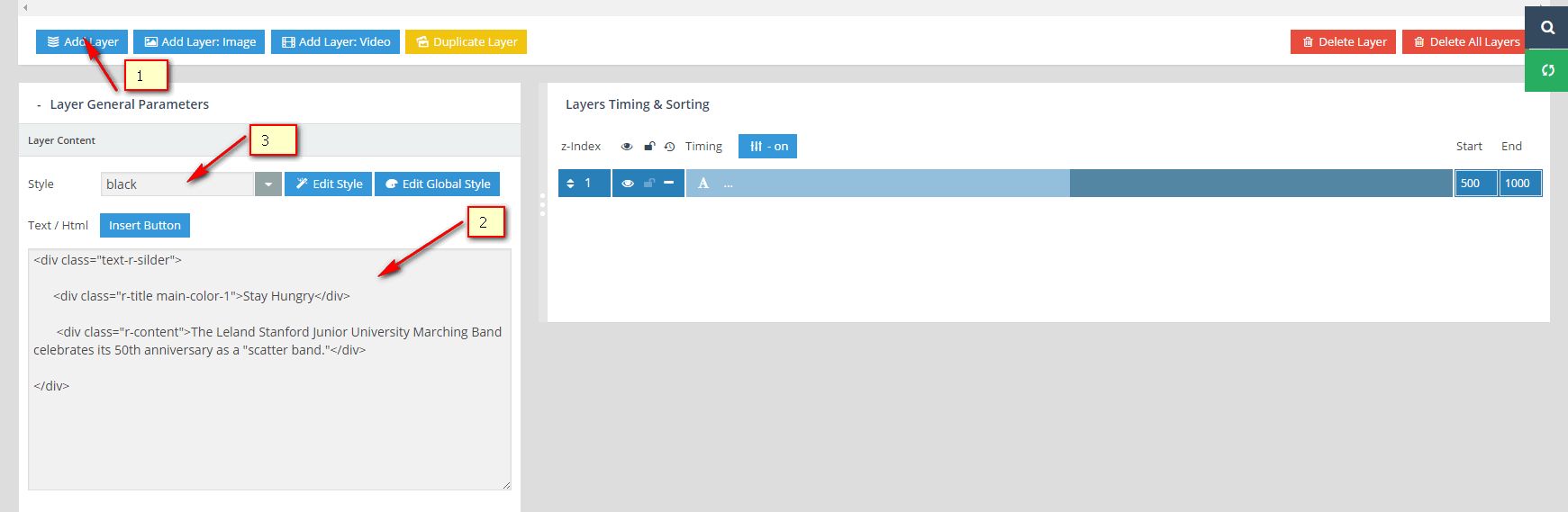 - layout="" // The text is aligned right, left or center
