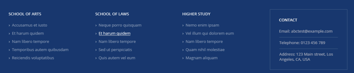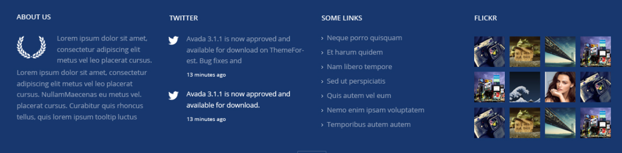 There are three lines in Footer Sidebar in demo page, the first line uses widget name "Text". For example: For the content